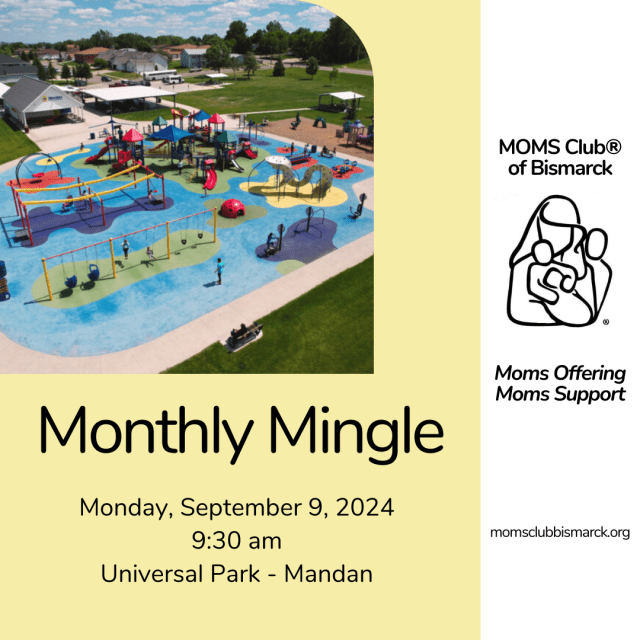 Join us for our September Monthly Mingle – open to all! It’s our “business” meeting where club decisions and service projects are discussed and approved. (All members can provide input and vote.) It also gives children time to play and mothers the chance to socialize.