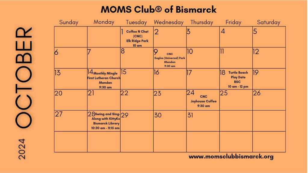 Please note that the events listed here are just our public ones. There are additional November events exclusively for members, which are accessible in our private Facebook group. If you’re not a member yet but are interested in learning more about us, send an email to momsclubbismarck@gmail.com or direct message our public Facebook page to introduce yourself.