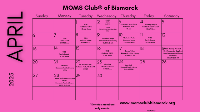 While the current weather forecast is predicting we might start April with a snowstorm (*sigh* North Dakota), we’re still looking forward to getting out and about this month! Events will be mostly indoors until temperatures are consistently warmer. If you’re a member, find additional details plus other conversations in our private Facebook group.